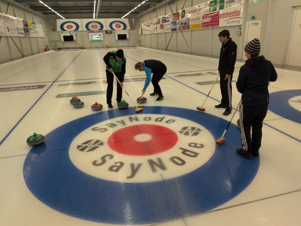 Für unseren jährlichen Firmenausflug tauschten wir am 10. März 2026 die Büros gegen das Eis der Curlinghalle des CC Emmental in Zollbrück. Nach einer kurzen Einführung traten Team Rot und Team Grün in einem Match über fünf Ends gegeneinander an.